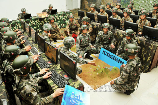 资料图:新疆军区某部使用我军首款具有自主知识产权的网游《光荣使命》模拟对抗演习