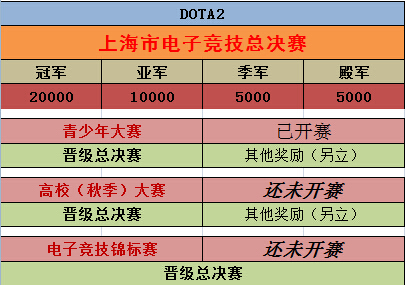 并设置上海市电子竞技总决赛奖金:冠军20000元、亚军10000元、并列季军(2名)各5000元