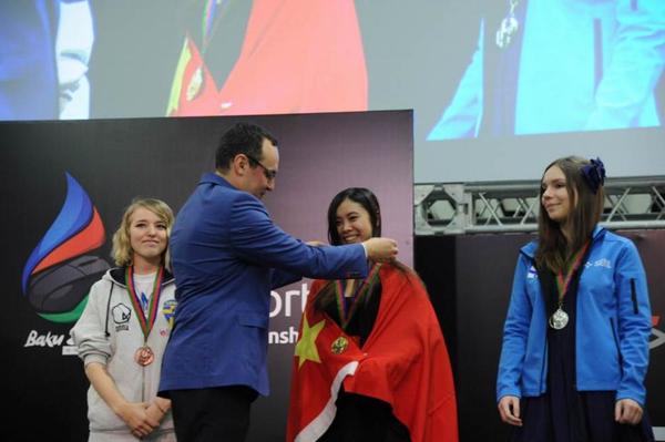 据国家体育总局消息:经过两天紧张激烈的角逐,2014年11月14日,阿塞拜疆当地时间21点,中国选手马雪(Mayuki)在第六届世界电子竞技锦标赛星际争霸2女子组比赛中,以3:2的比分战胜来自芬兰的选手勇夺冠军。这是近年来中国女选手在世界电子竞技大赛中获得的最佳成绩。