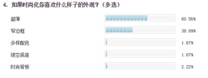 我们先来看看外观方面的需求。目前的电竞显示器都是以黑色为主,产品的个头也都比较大的,那么用户是否真正的对这种电竞风格感冒呢?经过调查我们发现情况并不是这样的。有80%的用户认为电竞显示器应该时尚化,而不是一味的黑色为主。其中选择超薄和窄边框的用户群体占据了大多数,可见这两种外观设计,不仅仅在普通显示器中受欢迎,对于电竞显示器,显然大家认为这两种元素也是合适的。