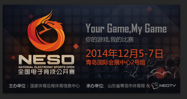 2014年全国电子竞技公开赛,竞赛时间:2014年12月5日——12月7日,在山东省青岛市国际会展中心召开。