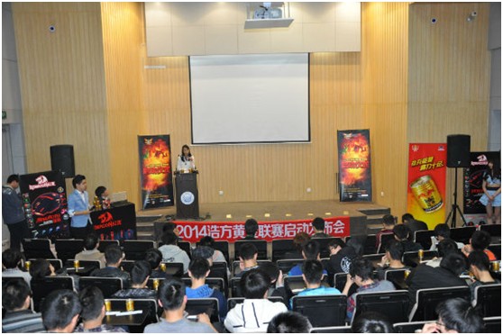 3月31日晚,2014浩方黄金联赛(以下简称HFGL)春季赛新闻发布会在同济大学综合楼10楼隆重举行,知名电竞外设厂商红龙嘉宾东莞丰润计算机有限公司董事长陆航先生出席,充能饮料红牛倾情赞助支持,世界级电竞明星INFI受邀参加本次新闻发布会,并在发布会上大谈了与浩方的不解之缘。众多玩家和电子竞技爱好者受吸引,关注参与了新闻发布会。