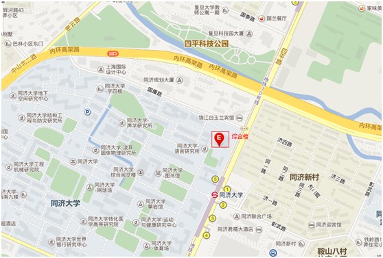 2.地铁10号线同济大学站下,从正西方向出发,沿彰武路走70米右转直走180米可达综合楼