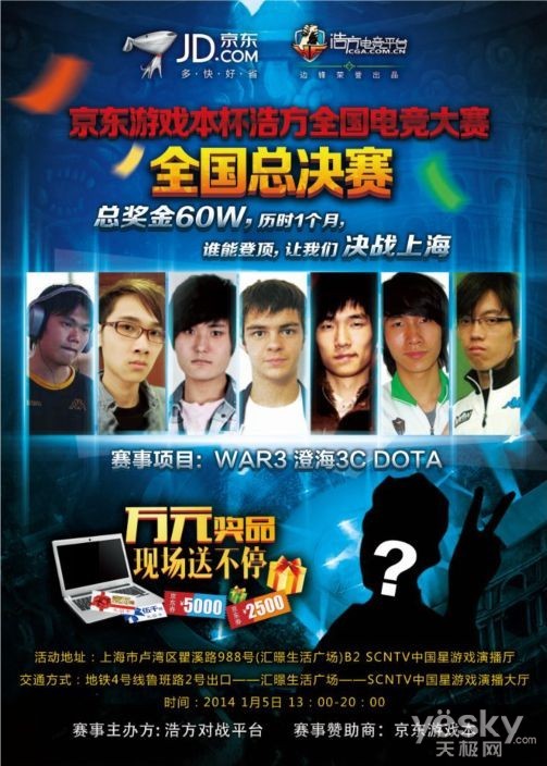 1月5日,京东游戏本杯浩方全国电竞大赛线下总决赛即将在SCNTV中国星游戏演播厅(上海市卢湾区瞿溪路988号汇暻生活广场B2)精彩上演,经典魔兽竞技巅峰对决盛宴,众多明星选手激情参与,好戏不容错过!