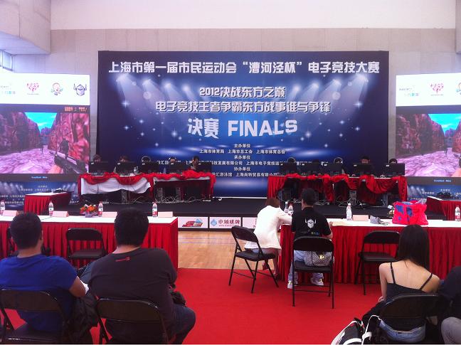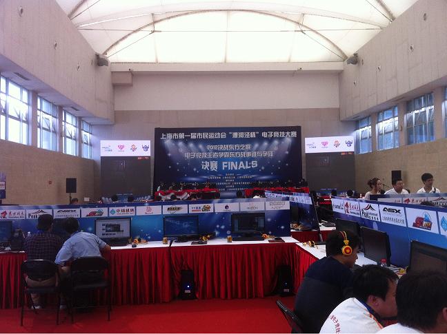 上海市第一届市民运动会—电子竞技大赛总决赛,于2012年10月21日上午9:00在上海市徐汇区游泳馆(枫林路329号)4楼羽毛球馆,准时打响了。各项目的前四名集结一堂,为最后的名次于荣誉发起了强烈的冲刺。本次赛事吸引了众多的玩家前来观战,在赛场活动场地,本届赛事组织了,一些游戏厂家的产品及软件的展示区,与电竞玩家进行了现场互动。如:SD敢达表演赛事、CS感应器材的表演。