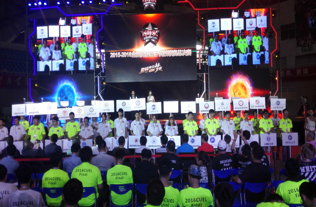 8月27日上午,2015—2016全国高校电子竞技联赛(CUEL)总决赛在武汉体育学院体育馆隆重举行。国家体育总局体育信息中心主任丁东、国家体育总局体育信息中心副主任李桂华、武汉体育学院党委书记彭道海、武汉市体育局副局长陈林祥、北京大誉世纪文化有限公司负责人张勤等出席开幕式并对总决赛表达了高度期许。