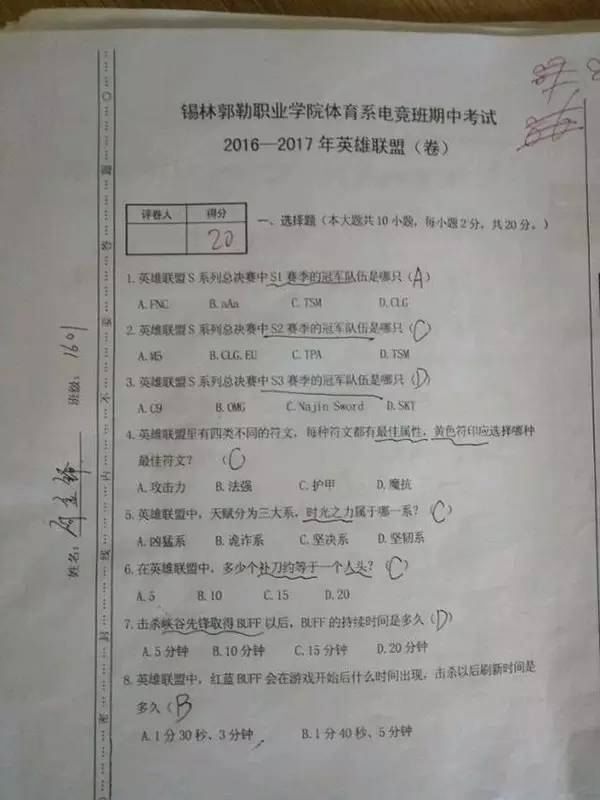 去年11月电竞班迎来第一次期中考试,以《英雄联盟》试卷为例,全班最高分仅为89分,而且近4成不及格!这比之如今大学生所发愁的《高数》、《线代》等科目的挂科率有过之而无不及。