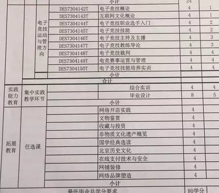 北开华嘉电竞教育开设了接近30门课程,修满80学分才能毕业。