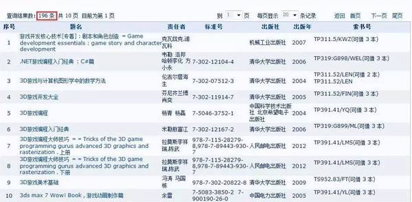 如果你在传媒大学图书馆以“游戏”为关键字搜索书籍,能得到198条搜索结果,其中像《游戏道具设计教程》、《游戏视频主播手册》、《游戏角色设计》、《游戏玩家》、《游戏外挂攻防艺术》、《游戏关卡设计》、《仙剑奇侠传·游戏小说》等等看上去非常生动实用的书籍都赫然在列。