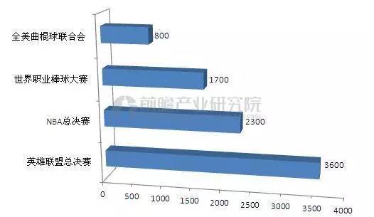 另外,电子竞技比赛的网络直播以及电视收视率蕴含着巨大的市场。例如,据美国Riot Games所公布的数据,在2015年英雄联盟全球比赛总决赛的观众人数已经超过了3600万人,已经超过了NBA总决赛的观众人数和世界职业棒球大赛的观看人数。