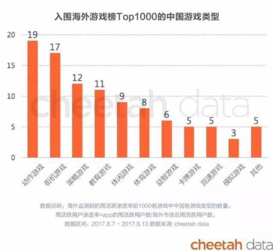 2016年10月海外游戏榜TOP1000中国游戏类型