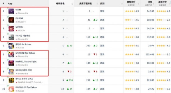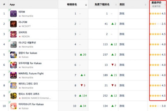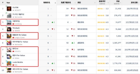 App Store畅销排行TOP10中仅有三款游戏不属于韩国三巨头旗下