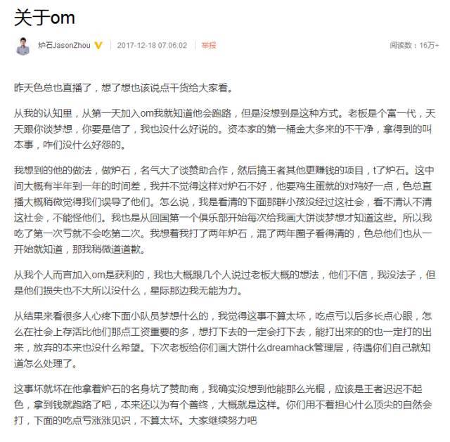 富二代投资电竞俱乐部在电竞圈早就习以为常,其中王思聪投资的IG电子竞技俱乐部可以算是其中的典型案例,而另一位富二代秦奋投资的KING电子竞技俱乐部则是失败案例。不过王思聪、秦奋这些投资者对电竞带来的仍然是正面案例。有正面必然会出现反面,以组建战队为名义骗取融资、赞助商的事情也是屡见不鲜,例如近日的OM战队解散事件就是其中之一。