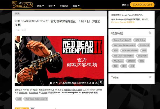 R星官方Twitter宣布《荒野大镖客2》首个演示将于美国东部时间8月9日上午11点放出,北京时间则是8月9日晚上11点,敬请期待。