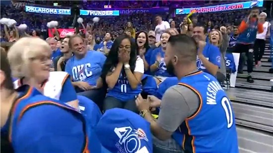俄克拉荷马城雷霆队的赛季揭幕战上,雷霆队的球迷现场求婚
